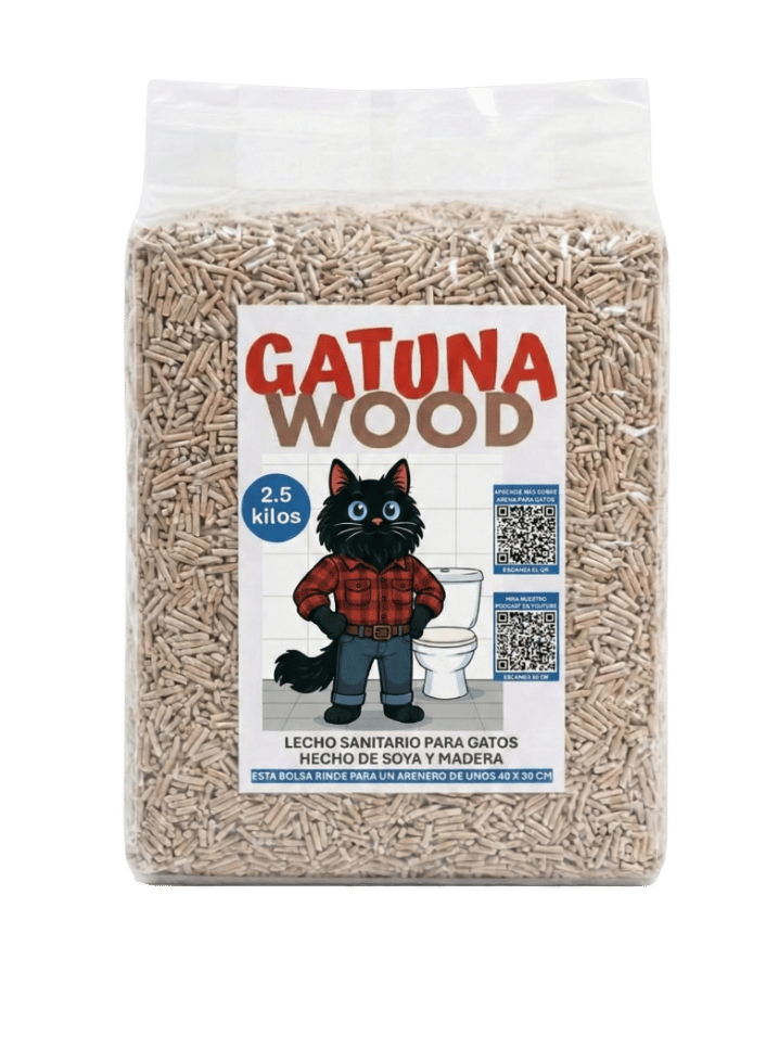 Control de olores y absorción natural. Pide tu bolsa de Gatuna Wood y recíbela en la puerta de tu casa.